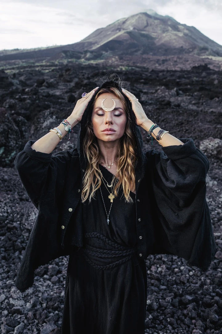 It has handmade braids around shoulder and braided belt to adjust the sizing and shape perfect combination of antique classical fashion together with modern cut.