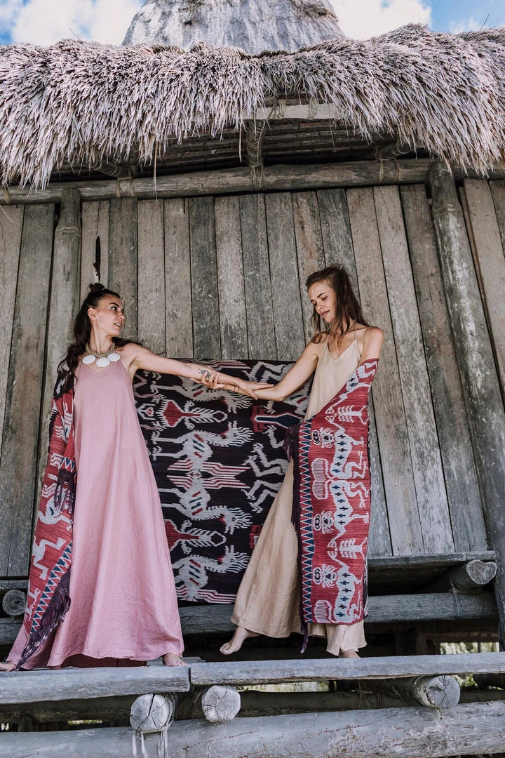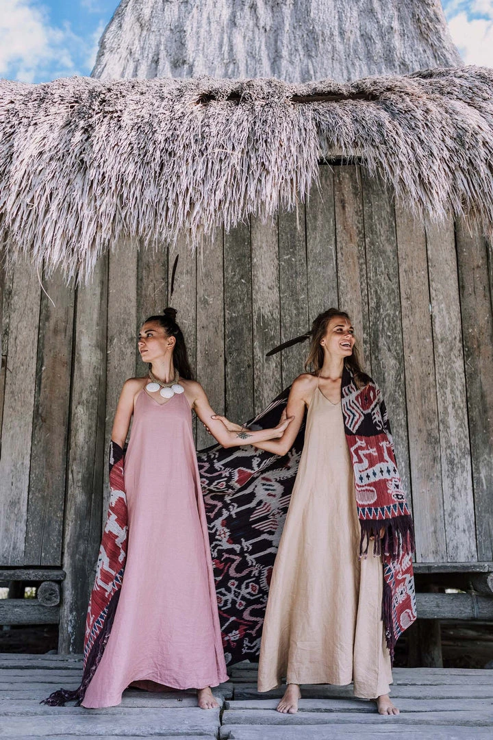 Our garments are made in Indonesia through sustainable and ethical fair work production and business practices. Our items are handmade in small quantities of washed organic linen and cotton fabrics, woven in Java by local women who are treated respectfully with fair wages. We aim to help and support the local communities and everyone who touches the dresses. The process of making these items takes time and effort, cause the items are double washed once they are made. Only after that extra softness and natural wrinkles of fabric can be reached.