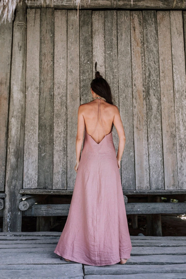 You can accessorise it with accessories like veils, flowers, belts or scarves to suit your taste. The dress is made of light Italian Linen that makes it flowy and comfortable to wear all day long.