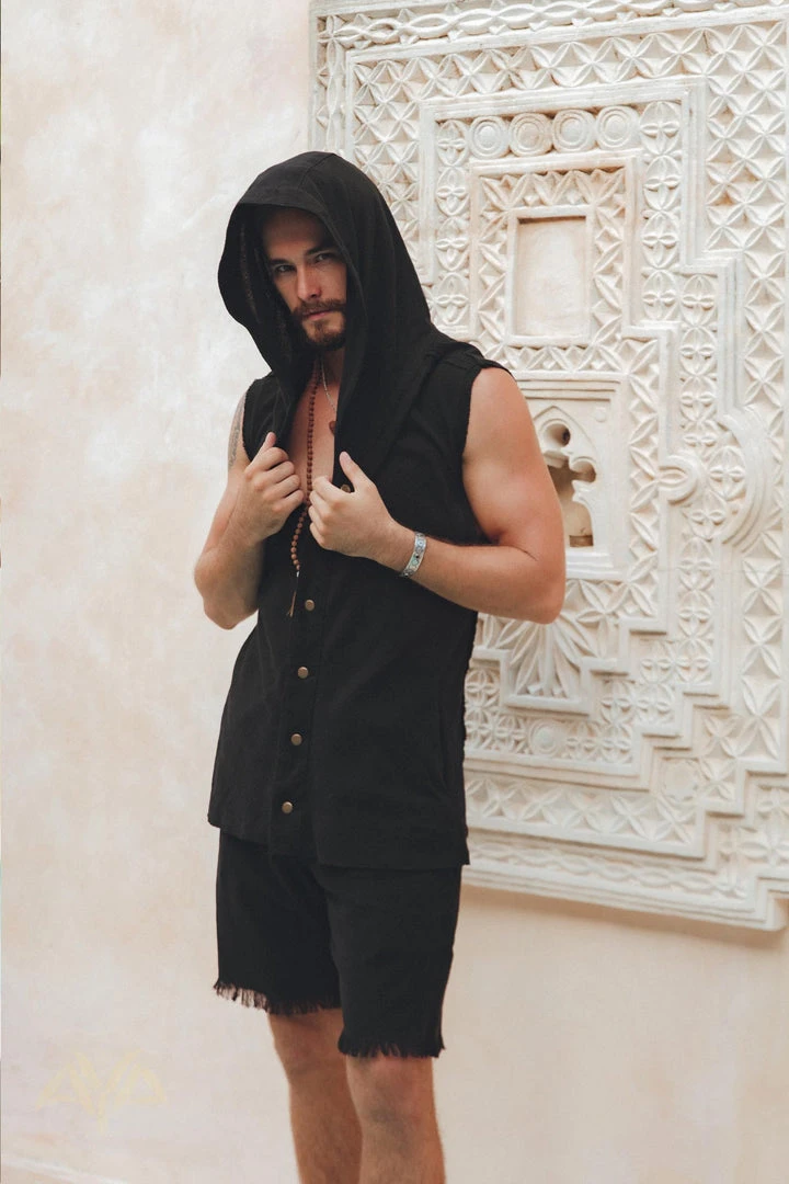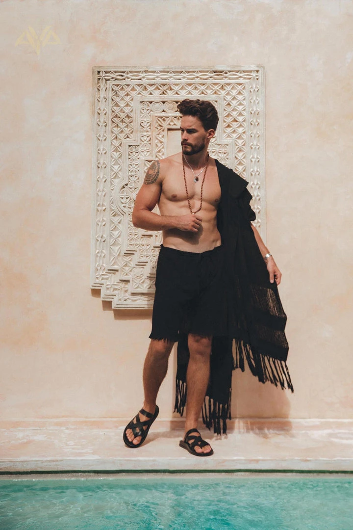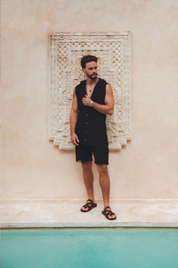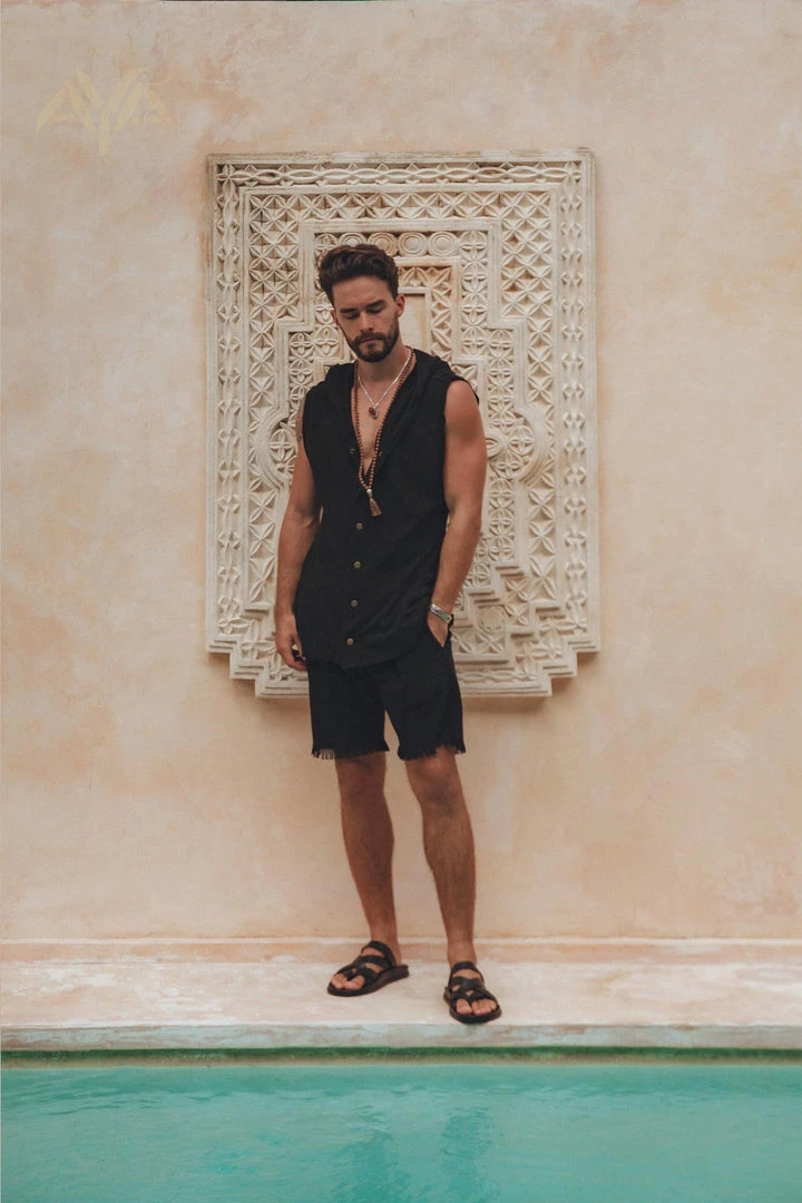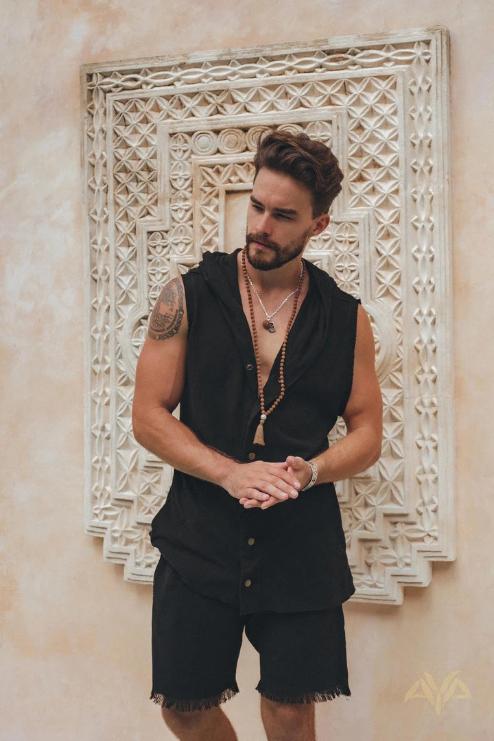 AYA Sacred Wear Pale Pink Linen Shirt For Men With Handmade Braids