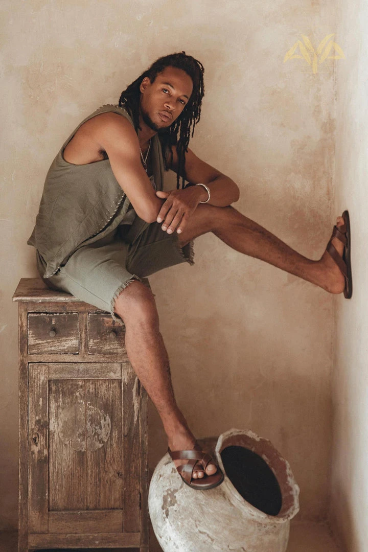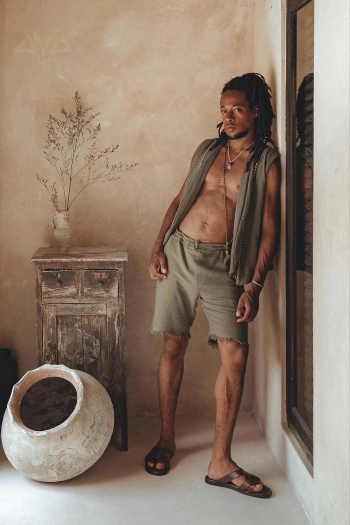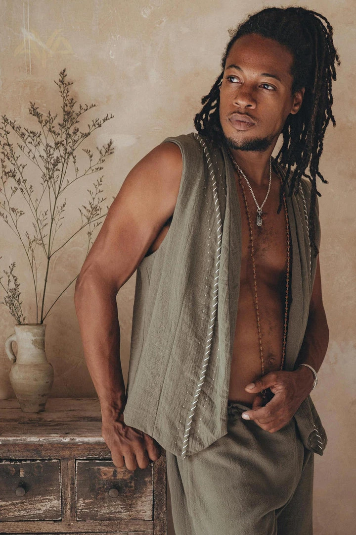 Dark sage green organic handwoven cotton vest for men.