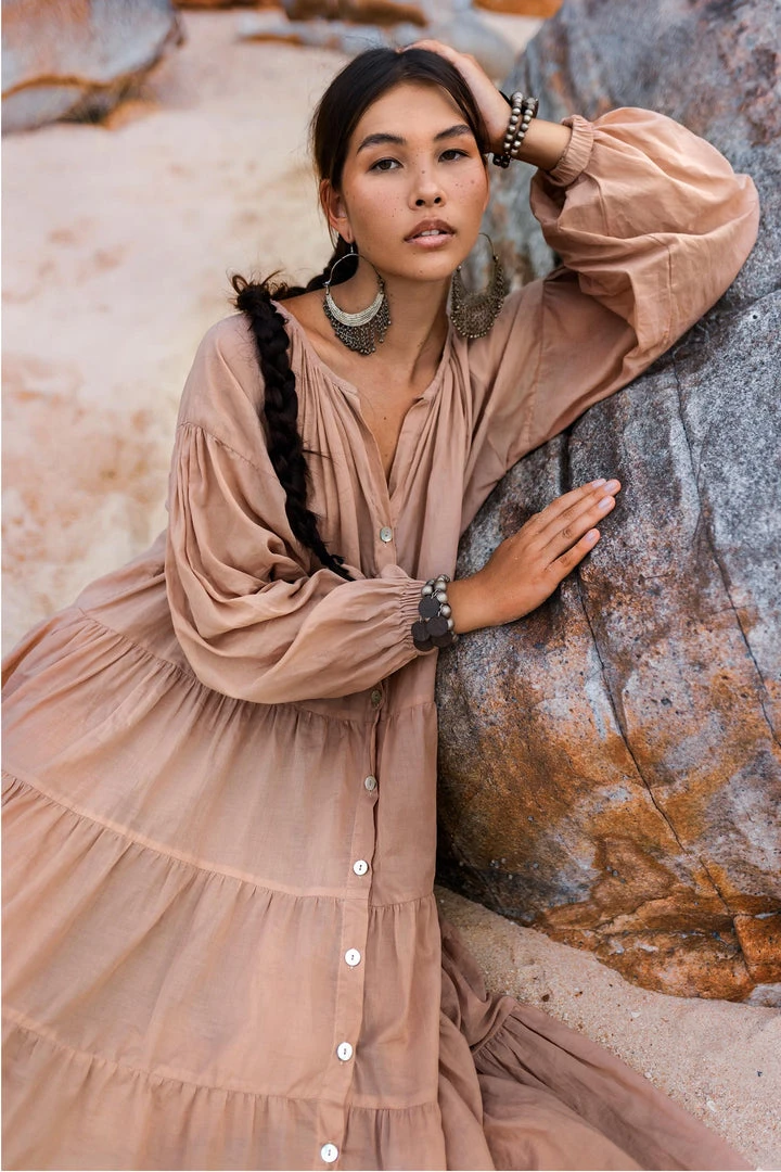 Beige cotton botanically dyed with shell buttons