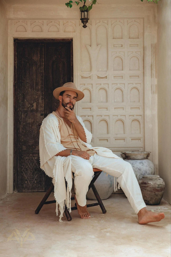 Off-White minimalist handwoven pants made from organic cotton very comfy to the body.