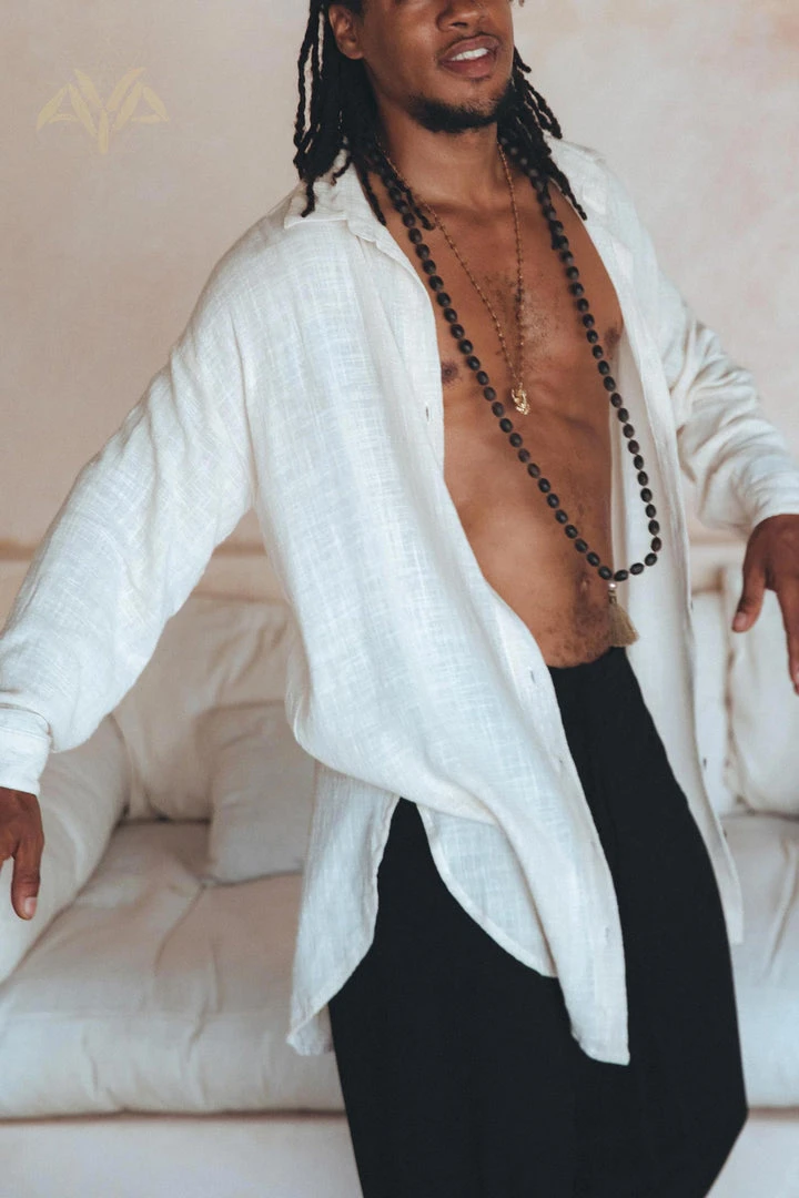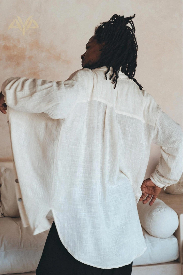 This spacious shirt is presented in four oversized  sizes:  S / M / L / XL