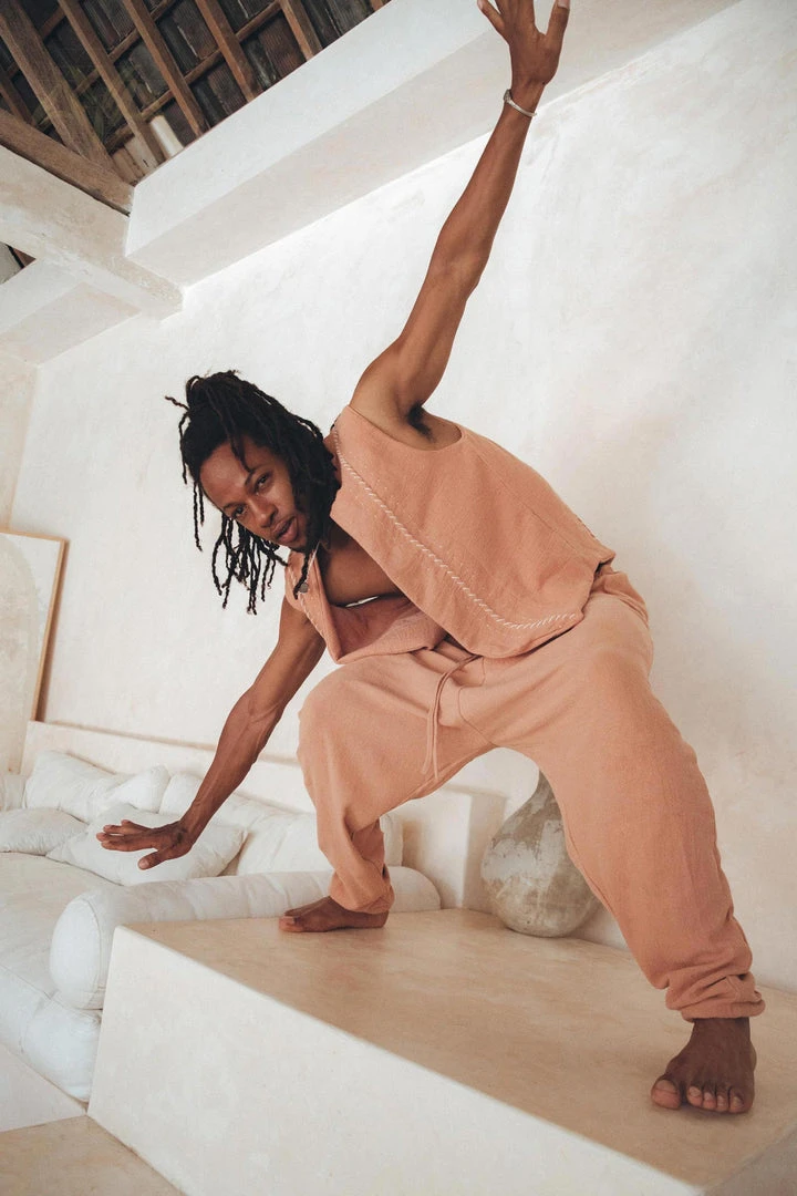 Orange organic handwoven cotton vest for men.