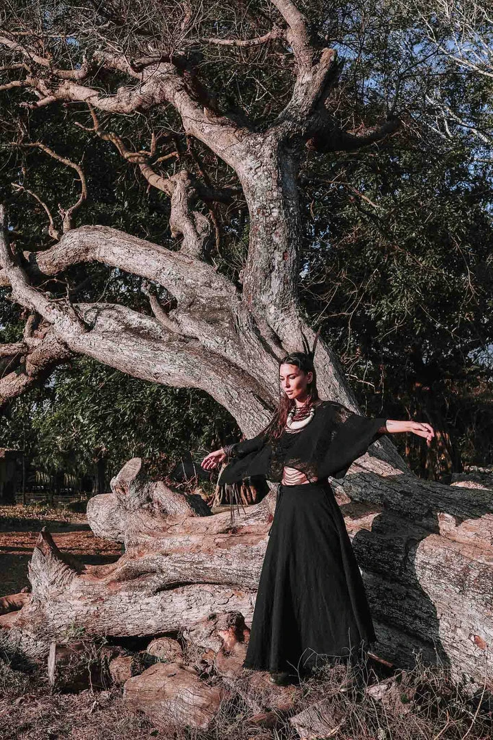 Our Black wrap gypsy boho maxi skirt made of pure organic handwoven linen good to wear on a special occasions or as everyday wear.