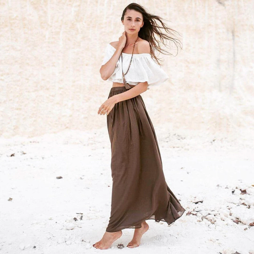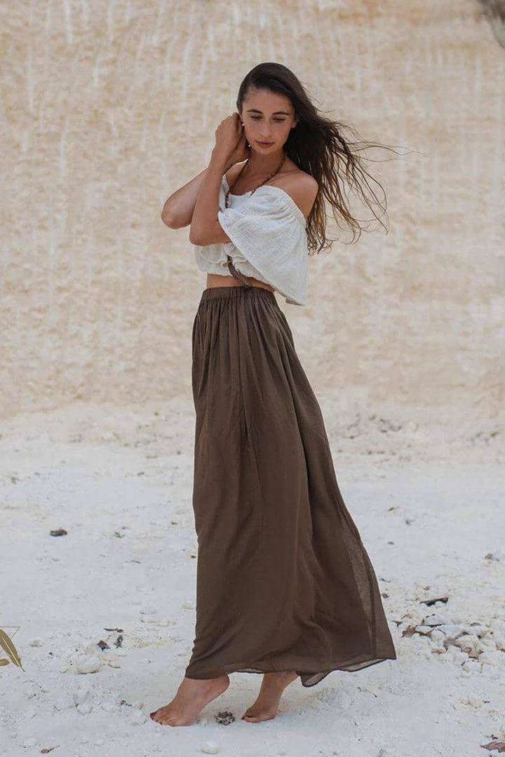 Organic cotton Bohemian maxi skirt is a star of our boho skirts for women. Thin & lightweight bohemian maxi skirt is super comfortable made of thin organic cotton!
