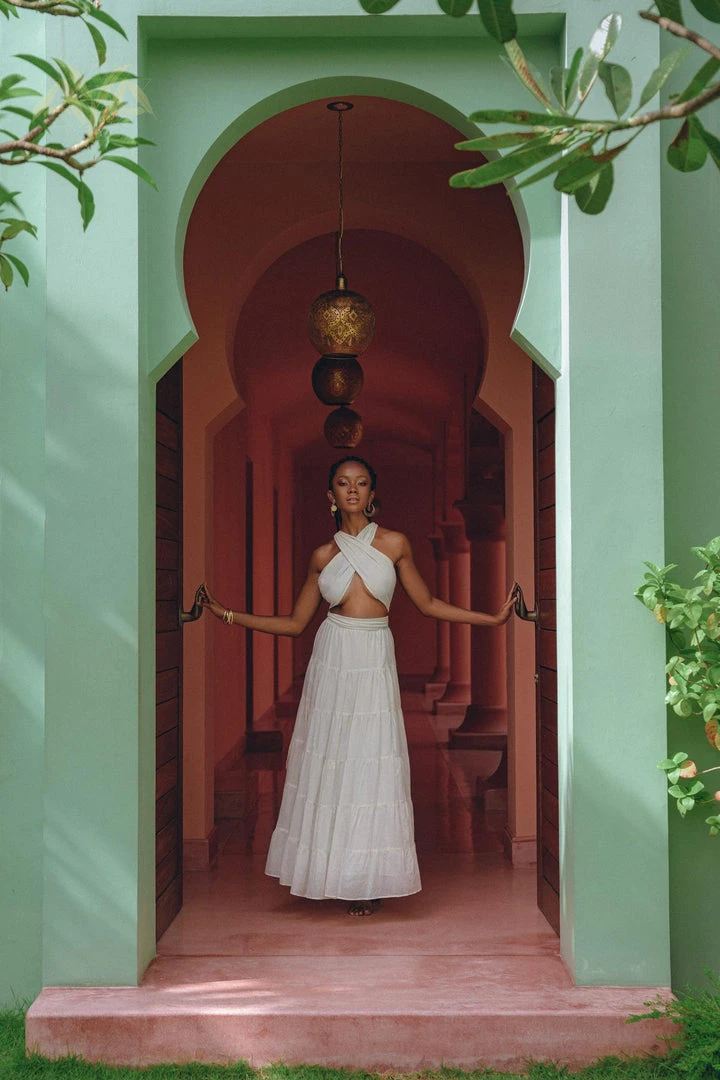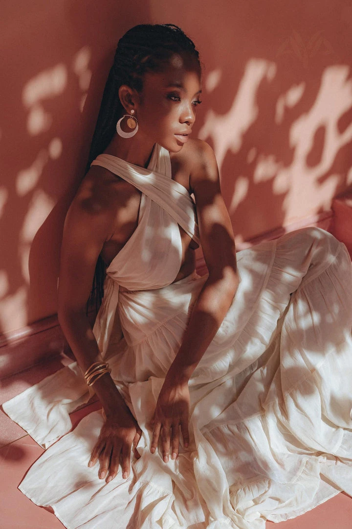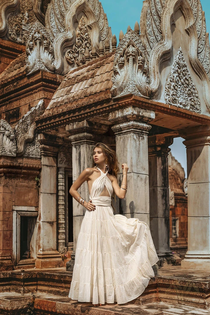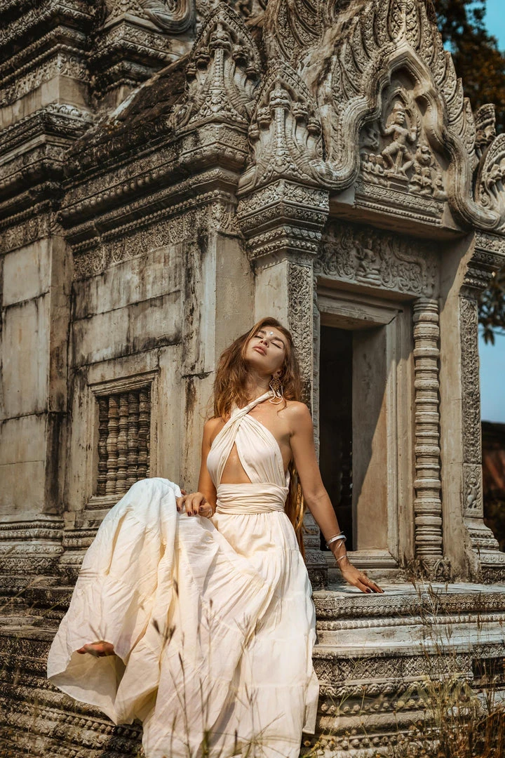 There are 12 meters of fabric on the skirt of the dress been use, while the dress is light, since it is made of the thinnest weight of a feather organic cotton.