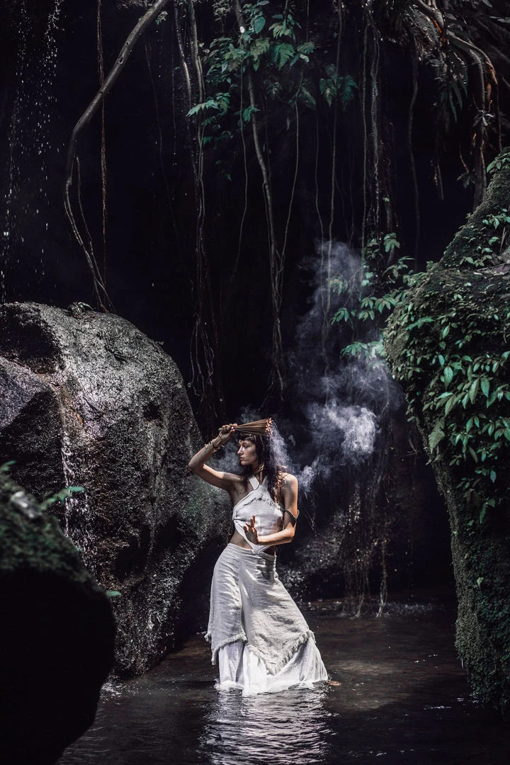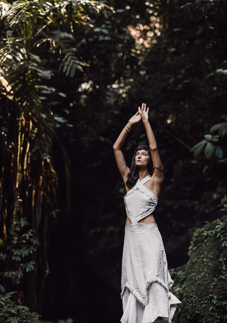 Our garments are made in Indonesia through sustainable and ethical fair work production and business practices. Our items are handmade in small quantities of washed organic linen and cotton fabrics, woven in Java by local women who are treated respectfully with fair wages. We aim to help and support the local communities and everyone who touches the dresses. The process of making these items takes time and effort, cause the items are double washed once they are made. Only after that extra softness and natural wrinkles of fabric can be reached.