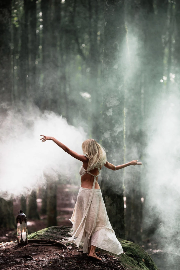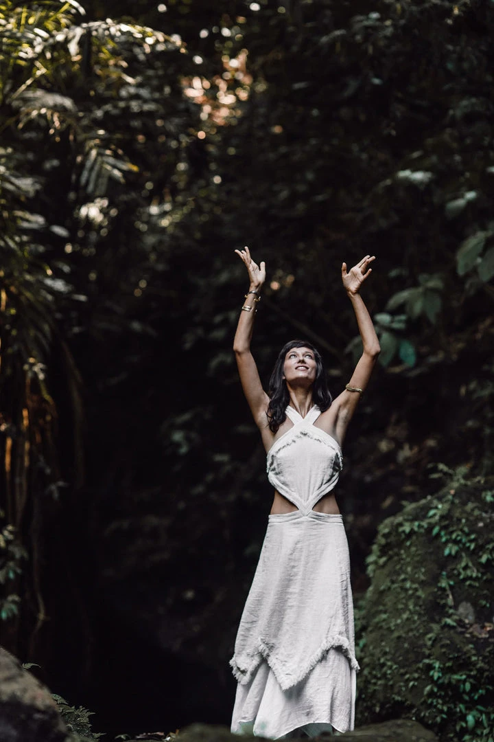 Made of homespun soft cotton with a weightless cotton underskirt truly bohemian dress for ladies. Rings on the sides are made of bamboo material