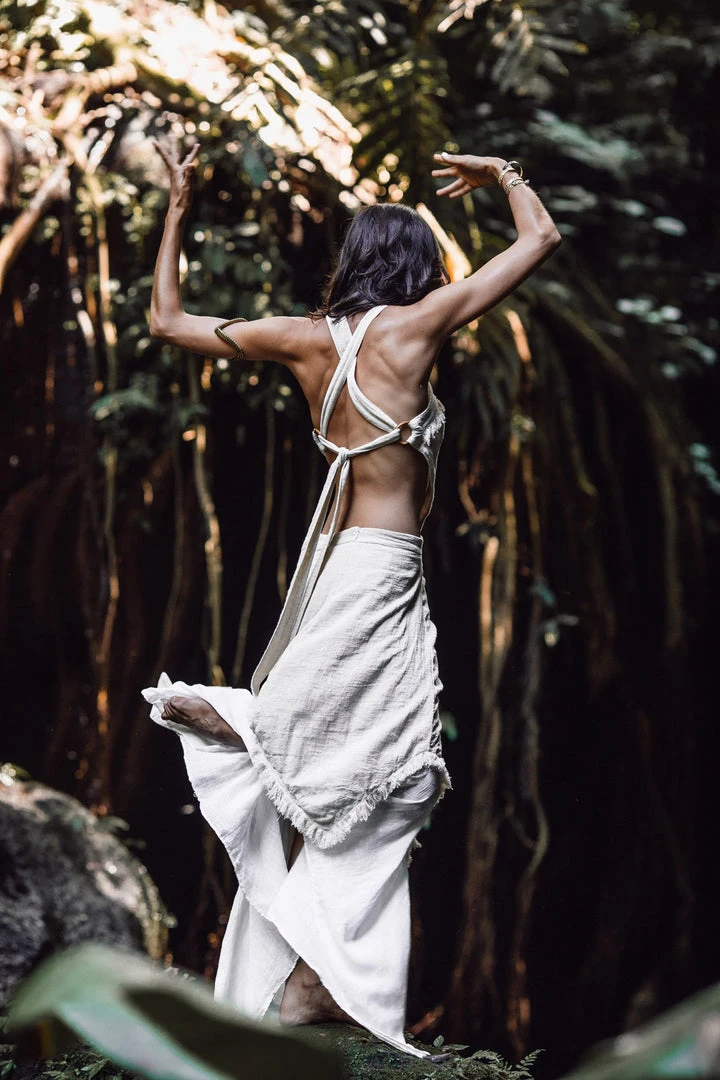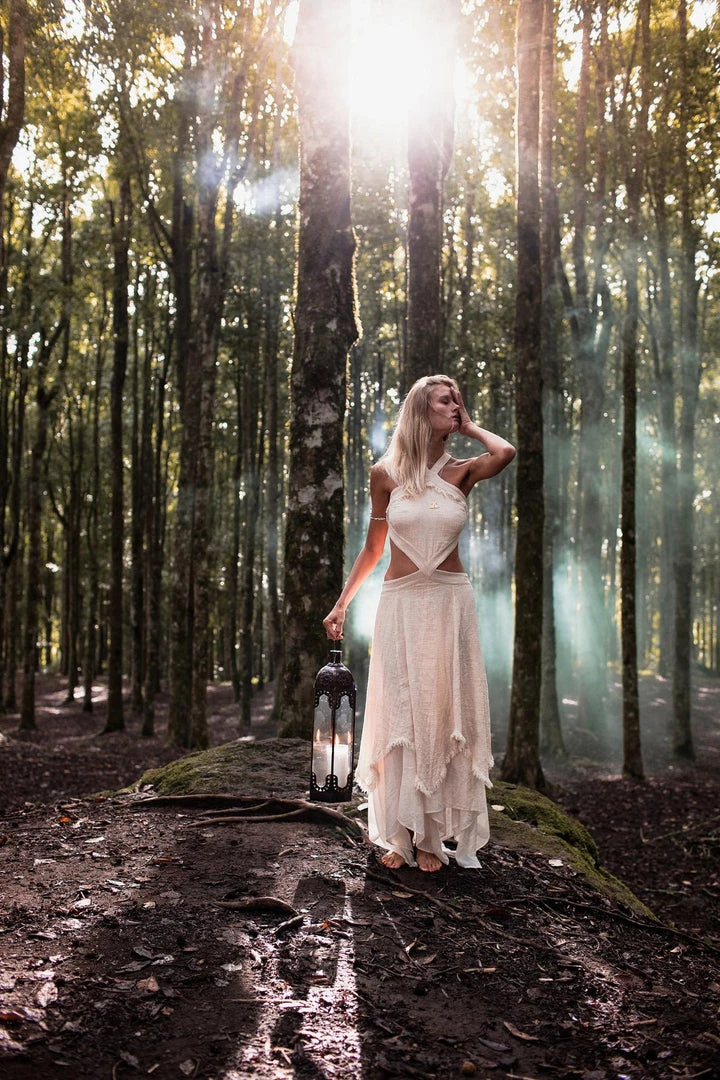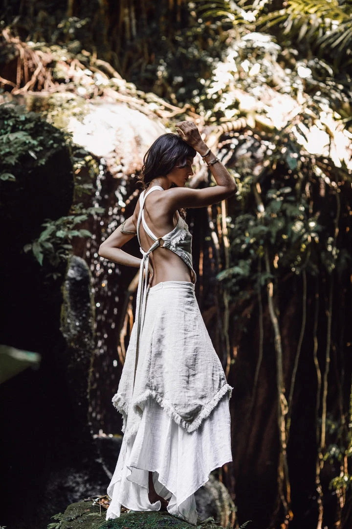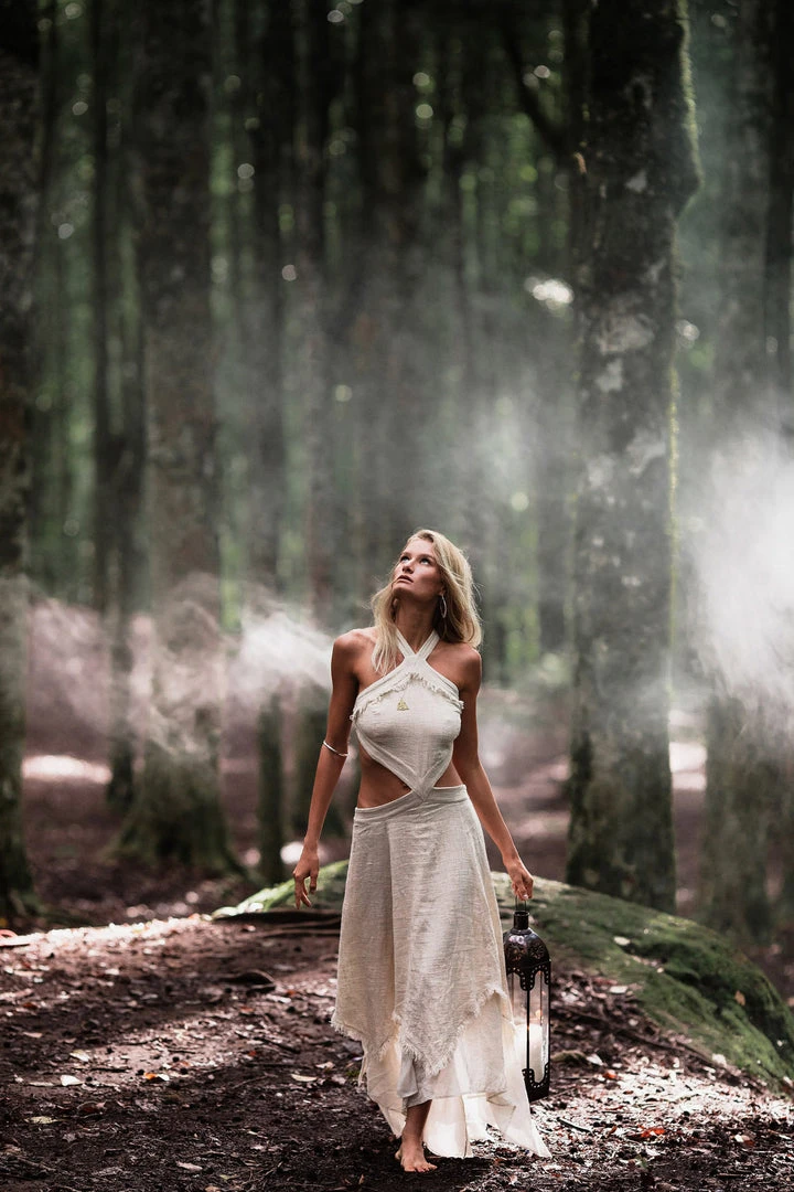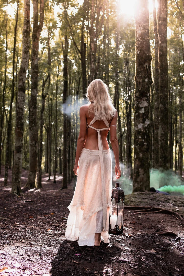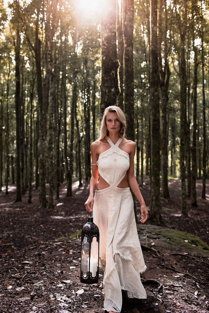 This Boho beach wedding dress is airy and magical, pure organic bridesmaid dress has a unique shape and structure is available in colour: