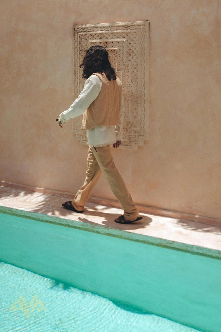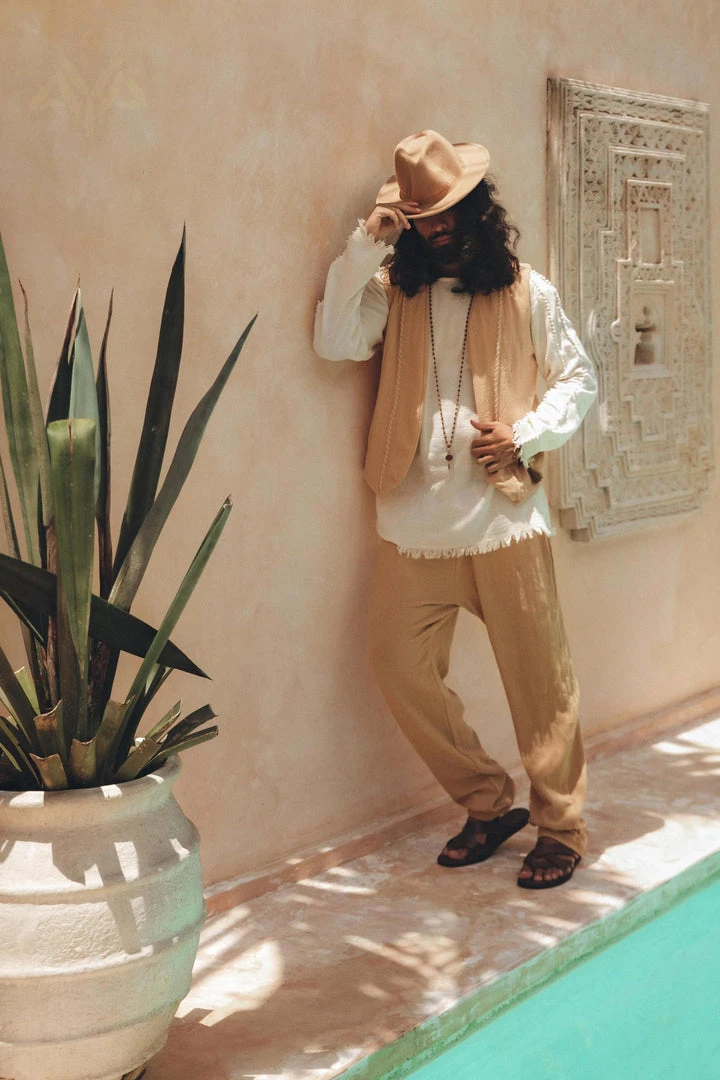 AYA Sacred Wear Beige Sand Colour Long Cotton Pants For Men