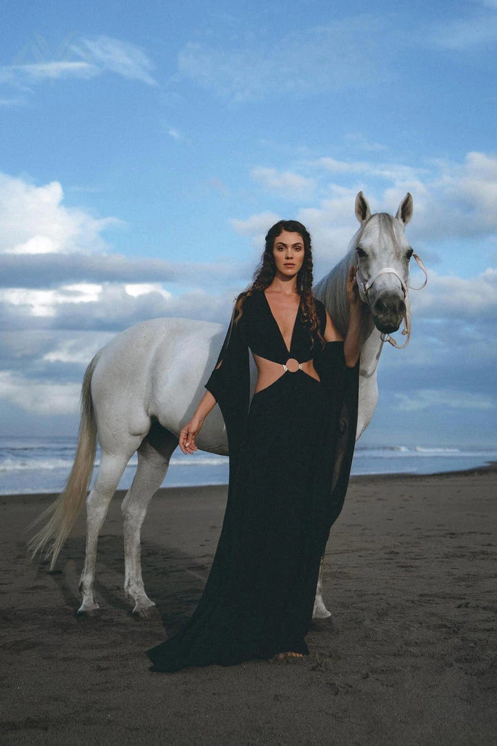 The ring in the center of the dress symbolises the female center, the beginning of the beginning. Made by hands from copper by artisans of Bali Island in the ancient technique – rustic hammer.