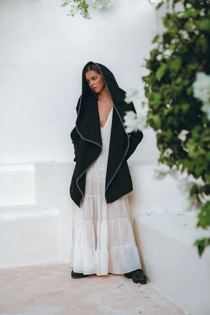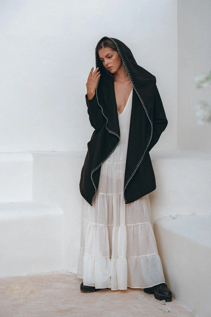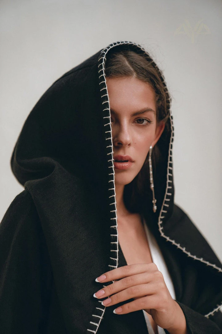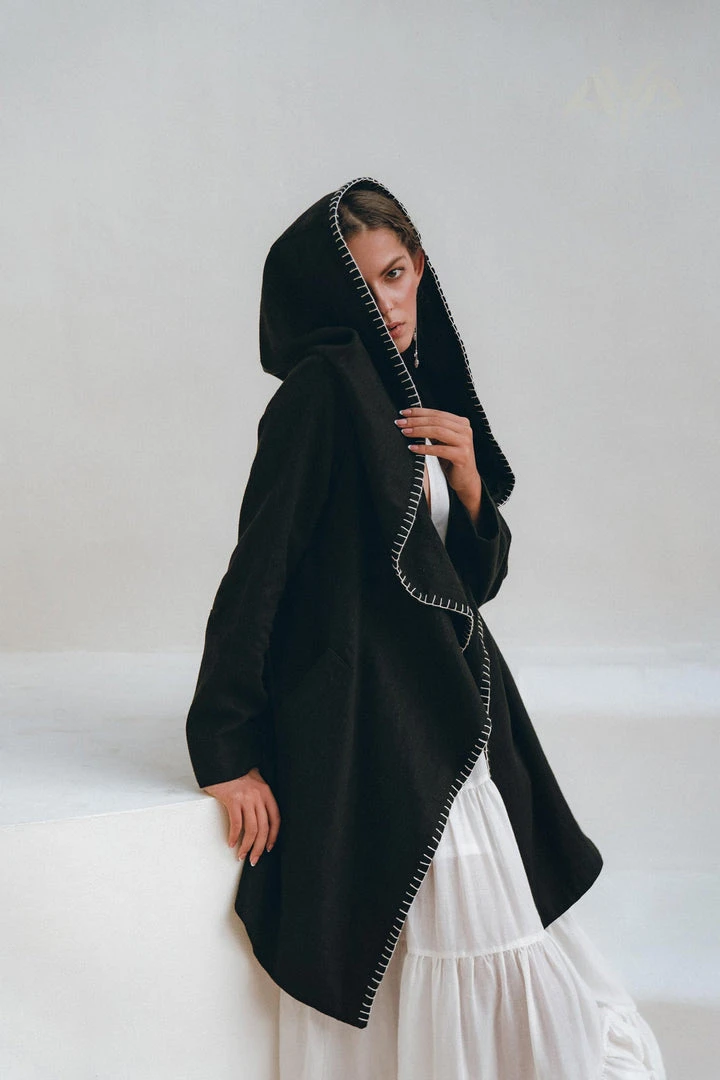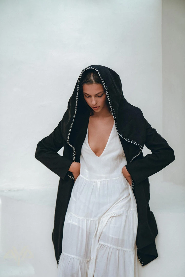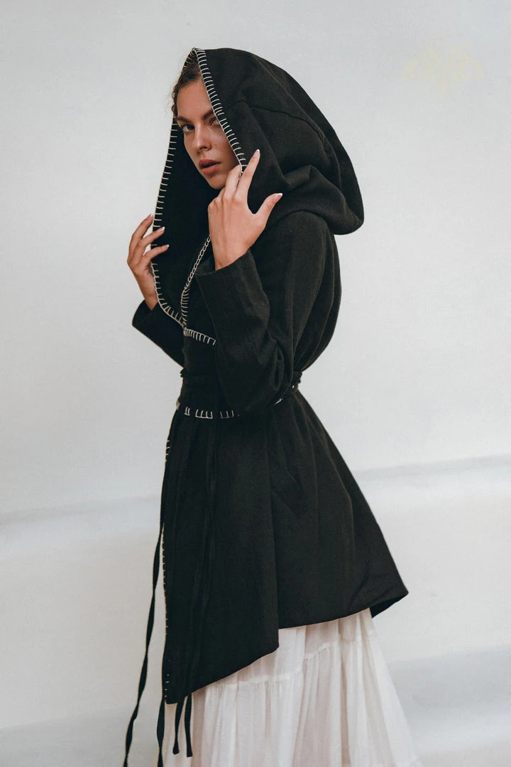 This unique high low hem hoody is made of homespun thick linen fabric with the use of viscose lining.