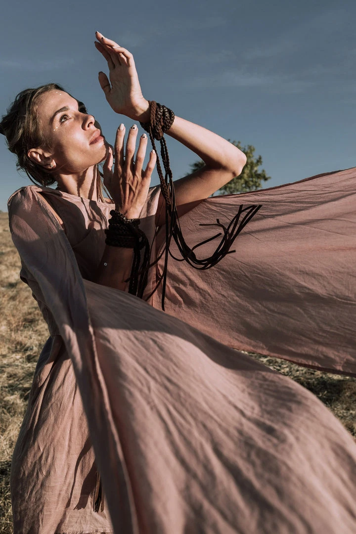 Our garments are made in Indonesia through sustainable and ethical fair work production and business practices. Our items are handmade in small quantities of washed organic linen and cotton fabrics, woven in Java by local women who are treated respectfully with fair wages. We aim to help and support the local communities and everyone who touches the dresses. The process of making these items takes time and effort, cause the items are double washed once they are made. Only after that extra softness and natural wrinkles of fabric can be reached.
