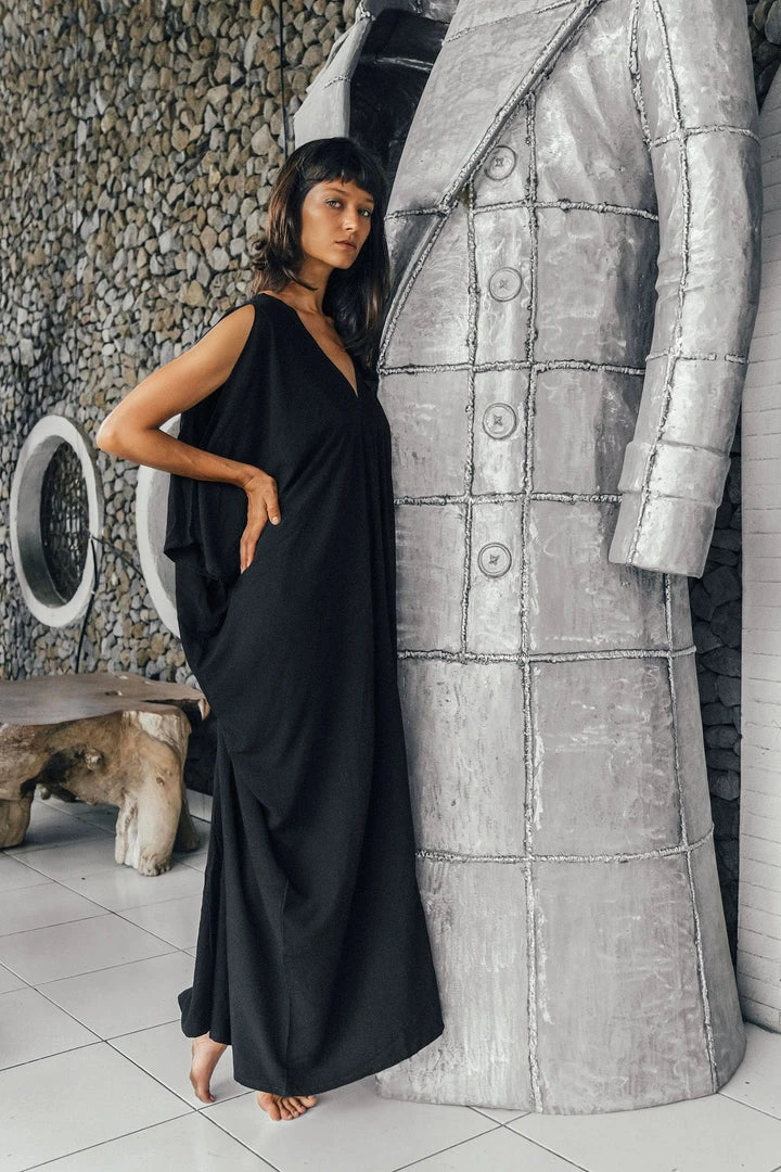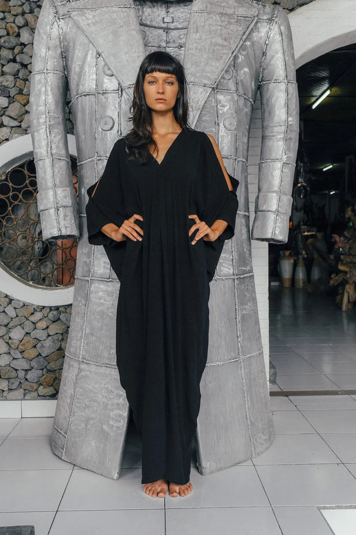 Black Kaftan dress for women is a loose fitting, long gown with a V-shape neckline. Our caftan is very spacious and comfortable to wear.